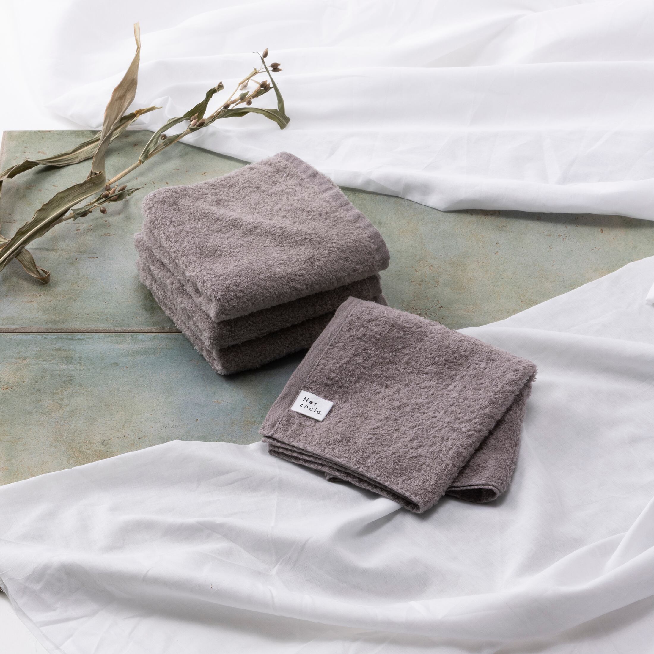 やわらかな手触りで素肌を包み込む、Nercocia.×おぼろタオルの心地よい一枚です。